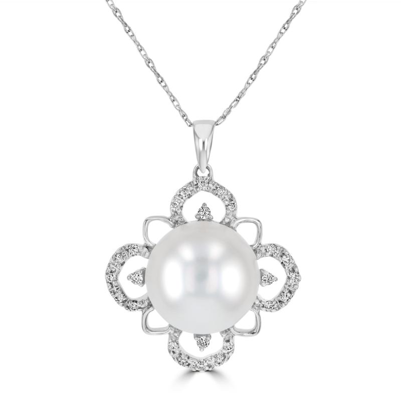 10.5-10.75MM FRESHWATER PEARL WITH ROUND DIAMONDS PENDANT (CHAIN NOT INCLUDED)